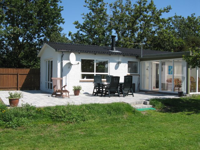 På bagsiden af huset er der også en lille terrasse. Da denne er østvendt er der sol på om morgenen / formiddagen.