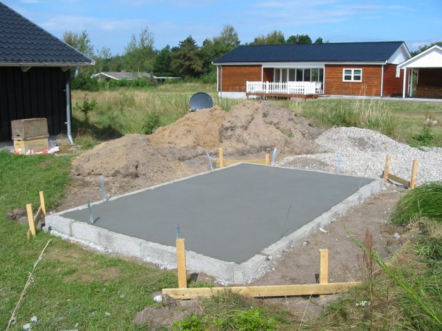 lige blevet færdige med fundamentet. Så godt som hele udhuset har vi lavet selv,